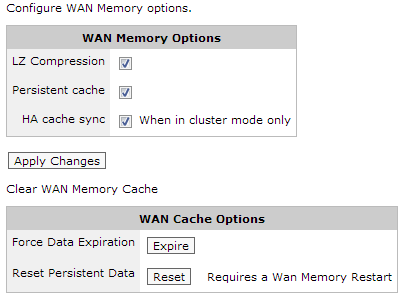 Using this function and restarting the WAN Memory service is a quick way to clear the WAN Memory